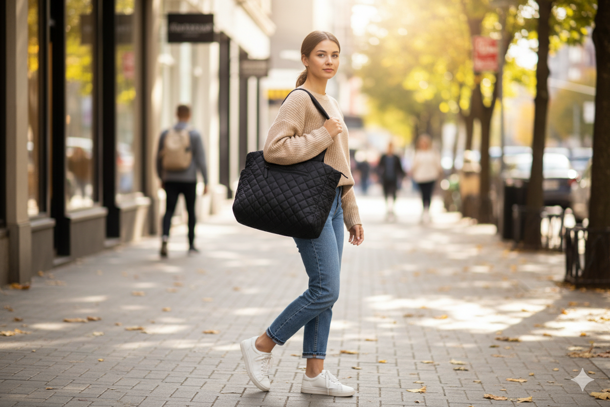 Şık, fonksiyonel ve zamansız: Luna Kapitone Siyah Tote Çanta ile her anınızda düzen ve zarafet parmaklarınızın ucunda. Geniş iç hacmi, akıllı cepleri ve sofistike kapitone deseniyle şehir hayatının vazgeçilmezi.